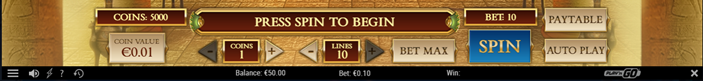 Situated underneath the Paytable, you will find the ‘Auto Play’ button.