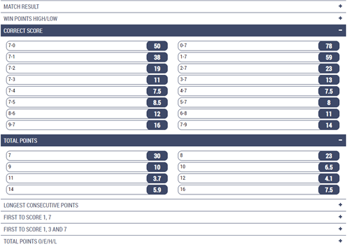 Also shown is the first player to score 1, 3 and 7 points. There is a market specifically for this option.