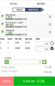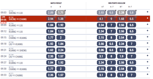 Several betting options are available on each match. On the main betting page, you will see a list of all the matches in the current series of games, along with the two most popular markets on each one.