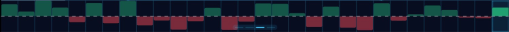В данном случае каждый раунд отображается в виде свечи (или столбика). Цветом обозначены рост или падение курса в ходе раунда, а высота столбика означает степень этих колебаний.